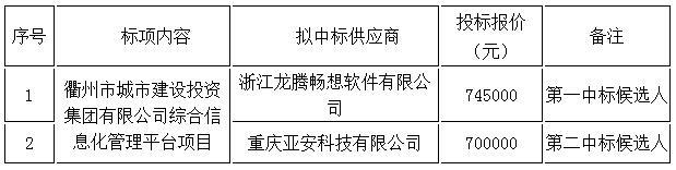 衢州市城市建設(shè)投資集團有限公司綜合信息化管理平臺項目的中標(biāo)結(jié)果公告