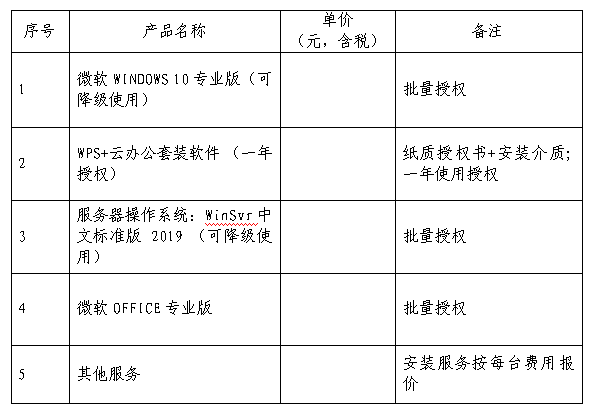 我公司為完成辦公軟件正版化采購項目,現(xiàn)開展詢價采購,向貴公司(下稱:供方)進(jìn)行詢價,請貴公司按照以下內(nèi)容進(jìn)行報價: