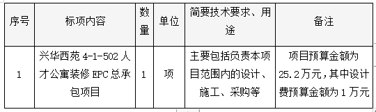 興華西苑4-1-502人才公寓裝修EPC總承包項(xiàng)目競爭性磋商公告