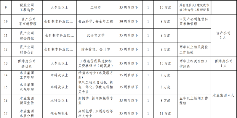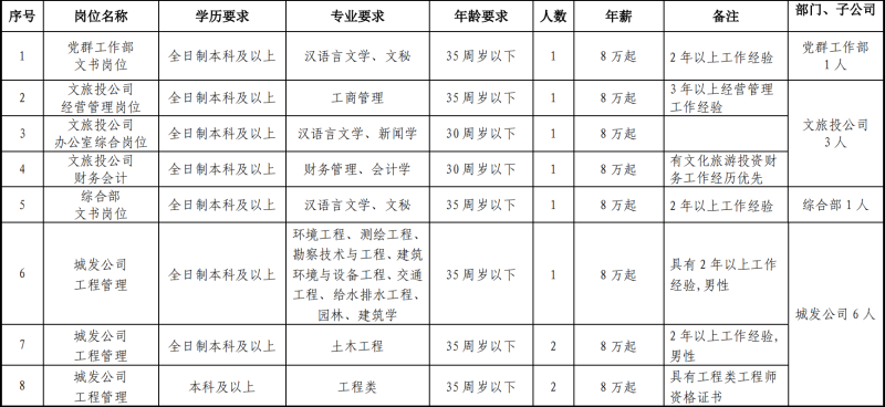 招聘計劃:辦公室文書、財務(wù)會計、工程造價、工程管理等崗位,共招聘20人