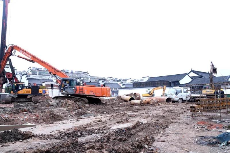 今天,在衢州古城雙修十大項(xiàng)目之一水亭門歷史文化街區(qū)二期補(bǔ)白新建工程——皂木巷片區(qū)新建與修繕工程工地現(xiàn)場,30余名工人正在緊張施工作業(yè),挖掘機(jī)轟鳴作響。
