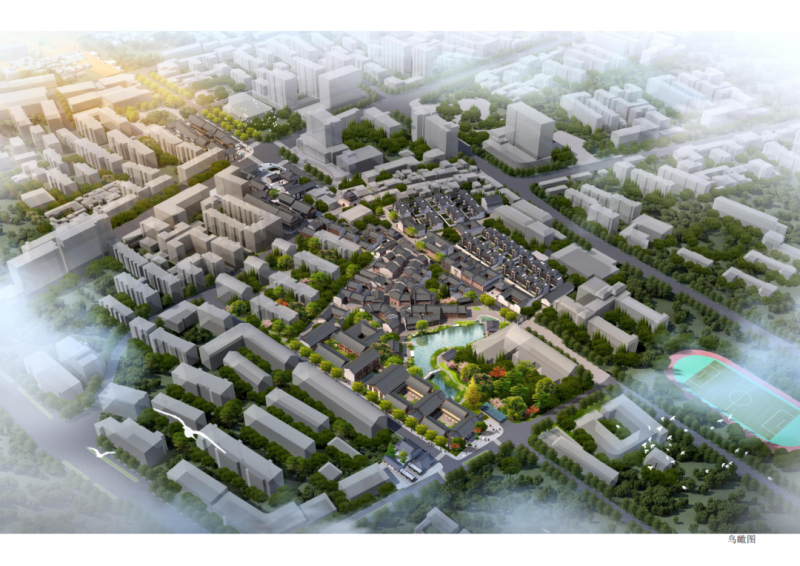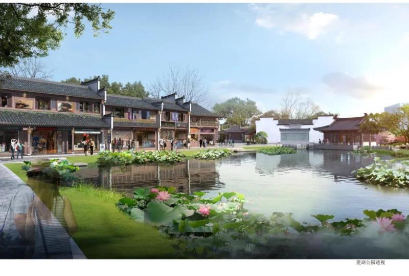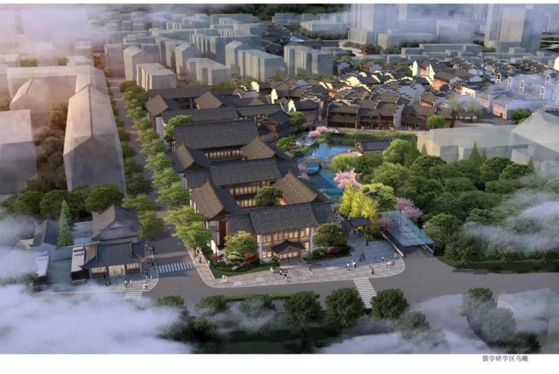 區(qū)塊三處于鐘樓和南孔家廟之間,建筑總面積約28000㎡,區(qū)塊內(nèi)文化展示以儒學(xué)文化為主題,形成文化體驗研學(xué)教育旅游觀光于一體的文化展示區(qū)。設(shè)計中亦植入了關(guān)于菱湖的歷史記憶,在該區(qū)塊東部區(qū)域展示了大片湖面,建筑上采用宋式風(fēng)格,以再現(xiàn)菱湖的歷史風(fēng)韻。