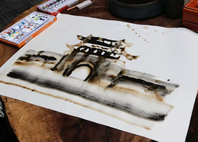何平手繪的水亭門