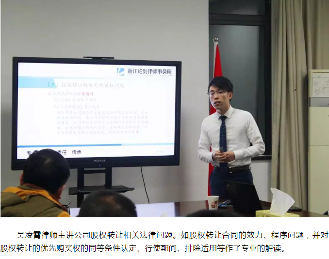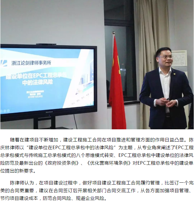 為進(jìn)一步深化風(fēng)險(xiǎn)把控意識(shí),提升風(fēng)險(xiǎn)管理能力,最大程度維護(hù)集團(tuán)合法權(quán)益,10月30日晚,集團(tuán)特邀法律顧問浙江論劍律師事務(wù)所陳慶林律師團(tuán)隊(duì),開展普法宣傳學(xué)習(xí)活動(dòng)。集團(tuán)黨委書記、董事長(zhǎng)、總經(jīng)理姜忠軍,副總經(jīng)理王堅(jiān)威聆聽講座。