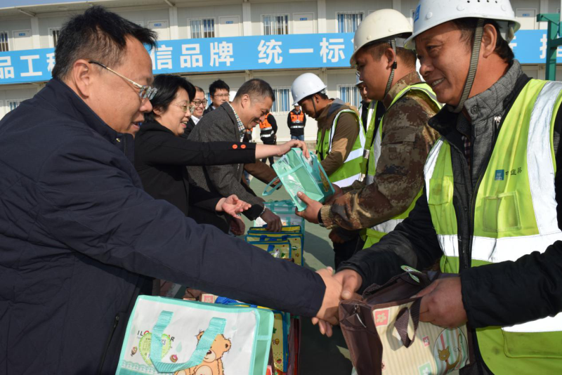 張衛(wèi)華一行重點參觀了項目施工現(xiàn)場及智慧展廳,了解了項目的建設情況,智慧工地、BIM信息系統(tǒng)、3D打印等各項新技術的應用情況 。在項目生活區(qū),張衛(wèi)華與一線工人親切交談,了解他們的勞動強度和生活狀況,為他們送上省總工會專門定制的慰問禮包,為建設者送來了溫暖與祝福。