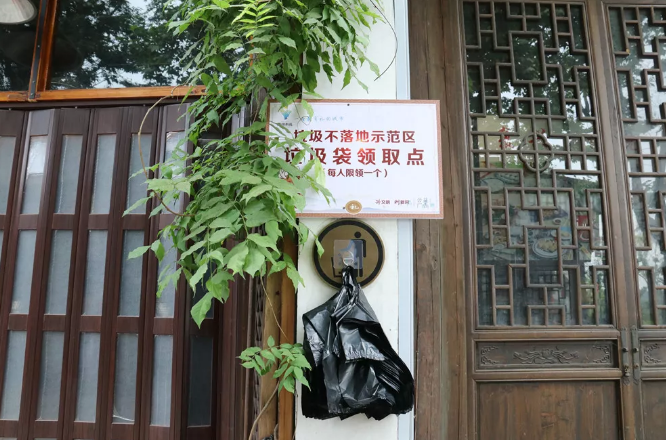 除了自帶垃垃圾袋外,游客也可在水亭街入口崗?fù)?、邵永豐東側(cè)墻壁,免費(fèi)領(lǐng)取垃圾袋。