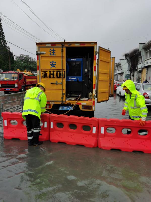 由于持續(xù)強(qiáng)降雨導(dǎo)致污水管位驟升,市區(qū)內(nèi)許多低洼地段積水嚴(yán)重。凌晨五點(diǎn),水業(yè)集團(tuán)便組織相關(guān)人員開始對(duì)轄區(qū)內(nèi)25個(gè)點(diǎn)位進(jìn)行不間斷巡查以及安排搶險(xiǎn)小分隊(duì)成員在泵站值守,并在冒水地段做好安全警示,提醒車輛和行人注意,防止安全事故的發(fā)生。