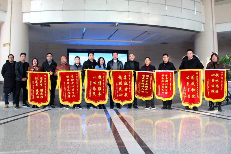 12月21日上午,衢江區(qū)水利局局長(zhǎng)楊偉華,廿里鎮(zhèn)黨委副書(shū)記、鎮(zhèn)長(zhǎng)劉俊峰,全旺鎮(zhèn)黨委副書(shū)記、鎮(zhèn)長(zhǎng)余豪驥,后溪鎮(zhèn)黨委副書(shū)記鎮(zhèn)長(zhǎng)林華,峽川鎮(zhèn)鎮(zhèn)長(zhǎng)朱志峰及各鄉(xiāng)鎮(zhèn)農(nóng)民飲用水工程分管領(lǐng)導(dǎo)、村干部代表一行來(lái)到市水業(yè)集團(tuán)并送上了8面錦旗。