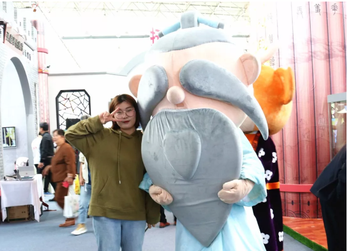 現(xiàn)場,城投集團下屬的南孔文化傳播公司的南孔爺爺“吸粉”無數(shù),不時有市民前來合影~